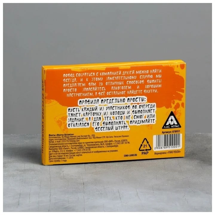 Купить игра для компании "фанты буханты" 20 карт от 100 руб. с доставкой до пункта выдачи в Усинске. Интернет магазин ДекаМаркет. Оплата при получении.